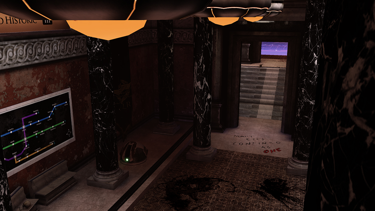 Addendum: floating tiles gave way when she decayed cold. Left to rats on tracks below. Gone now. No trace left.